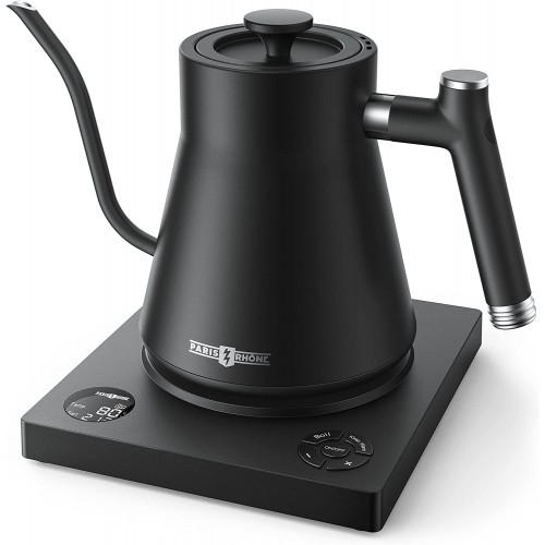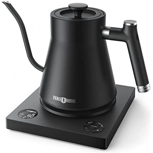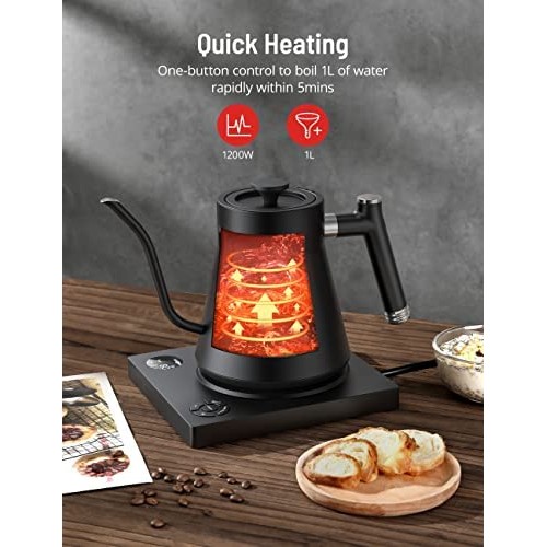 • Fast & Convenient: 1200W coffee kettle with one-button control boils up to 1L of water quickly within 5 minutes; A sleek LCD display screen indicates the desired Set Temp & Real-Time Temp for your drip coffee or tea; use the built-in Brew Stopwatch to time your tea or coffee extraction; engage the hold toggle,,2hr keep-warm mode gives more convenience to maintain the water at your preferred temperature for when you need