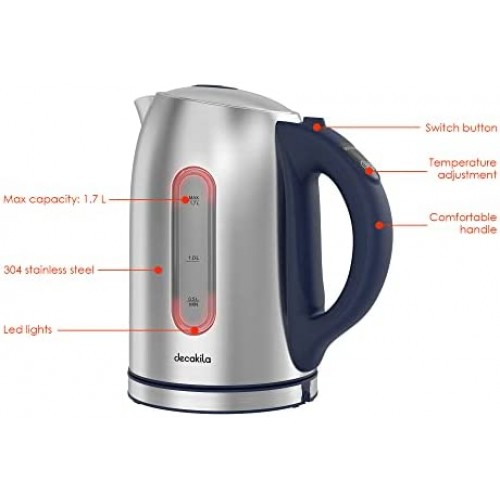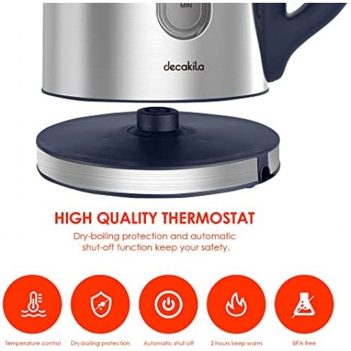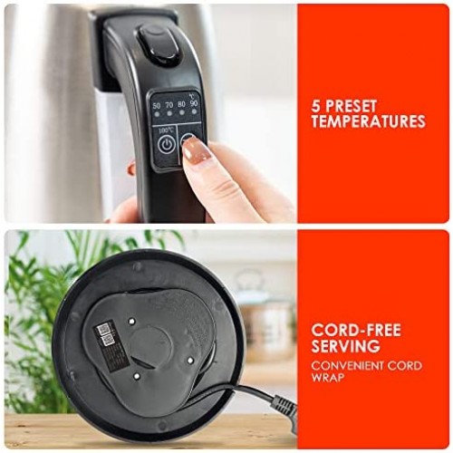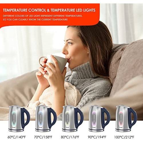 • 5 preset temperature functions: DECAKILA electric kettle has 5 different temperature options (140, 158, 176, 194, 212 °F), you can set the boiling temperature according to your preference, and the kettle's own LED light will change to a different color when the temperature changes